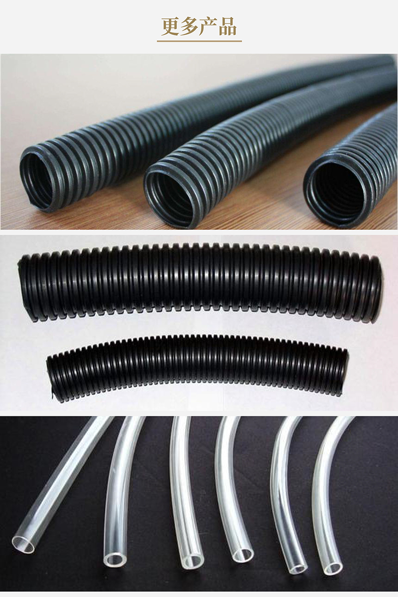 软管是现代工业中的关键组成部分,软管主要当作电线,电缆,自动仪器信号电线和电缆保护管以及民用淋浴软管,基准从3mm至150mm,小口径软管(内径3mm-25mm)主要是用以保护精细光学尺的传感线和工业传感器线。